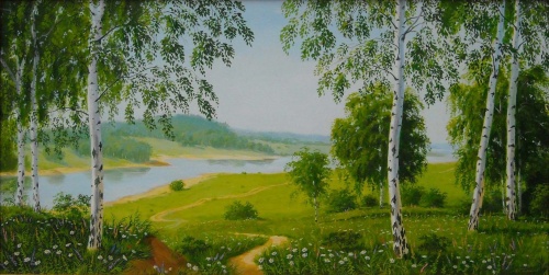 Русский пейзаж. Берёзы. Поле, выход к речке
