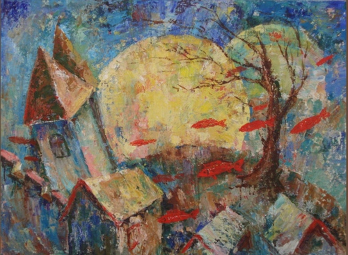 "Красные рыбки над городом"