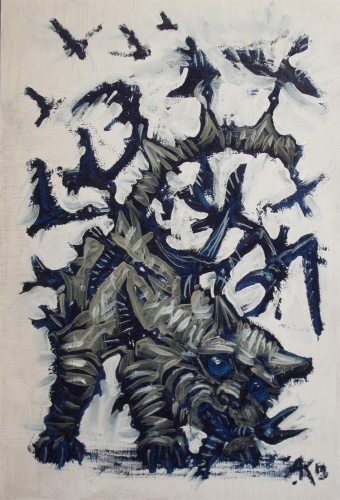 Это если видеть кота, как проводника бесовщины - в самый раз))). А если воспринимать эту работу с юмором , то зачем боевому коту рогатка? )))))))Если ее нарисовали, значит она играет какую-то роль...Какую, интересно?