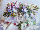 "Натюрморт с сиренью и вишнями" 40х30см.