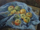"Яблоки на синей шали" (2010 г.) 35х45см.