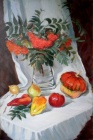"Натюрморт с рябиной и декоративной тыквой" (2012 г.) 38х58см.