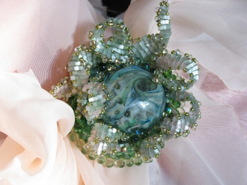 Бусина лэмпворк, японский и чешский бисер