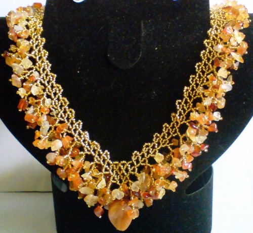 колье из бисера со сколами сердолика