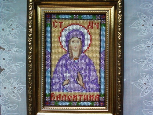 Работа выполнена бисером в рамочке.