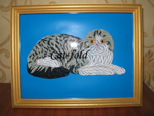 Картина-панно "Скоттиш-фолд" №4 в рамке, под стеклом, техника квиллинг (ручная р