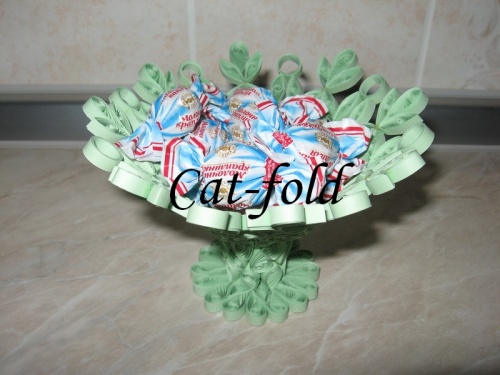 Ваза-конфетница (объемная), техника квиллинг (ручная работа), размер 14х14х9 см