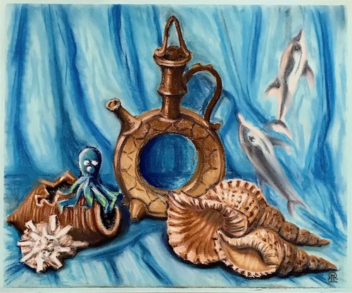 "Натюрморт с керамикой и морскими раковинами. "