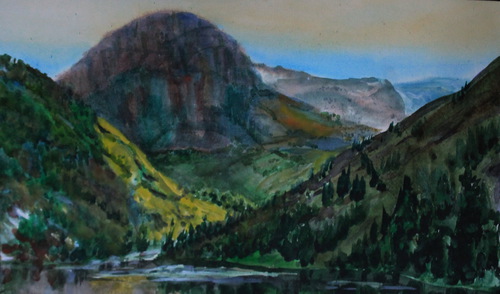 Алтай озеро Уймень картон, акварель 30х50 2020